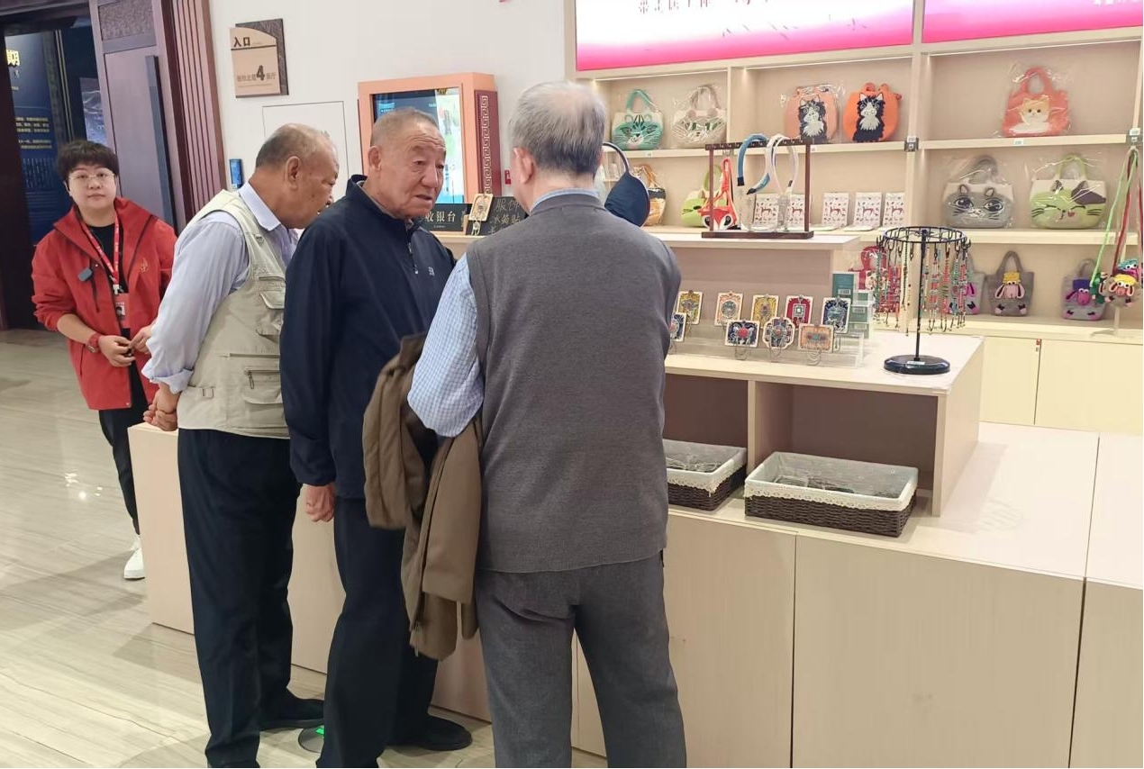 在二层“飞天神舟”展厅,1:1比例的天和核心舱实体模型令老同志们驻足惊叹;“文脉遗珍”展厅里的68项国家级非遗展示,通过实物、影像与场景还原相结合的方式,让老同志们沉浸式感受着各族儿女共同缔造的文化瑰宝。不少老同志拿出手机拍摄展品与合影,记录下与老友共忆岁月、共赏文脉的温馨时刻。