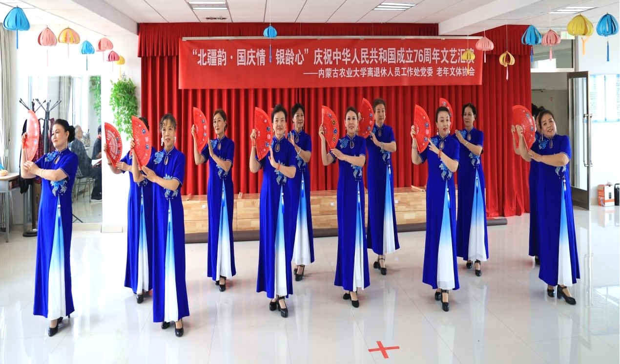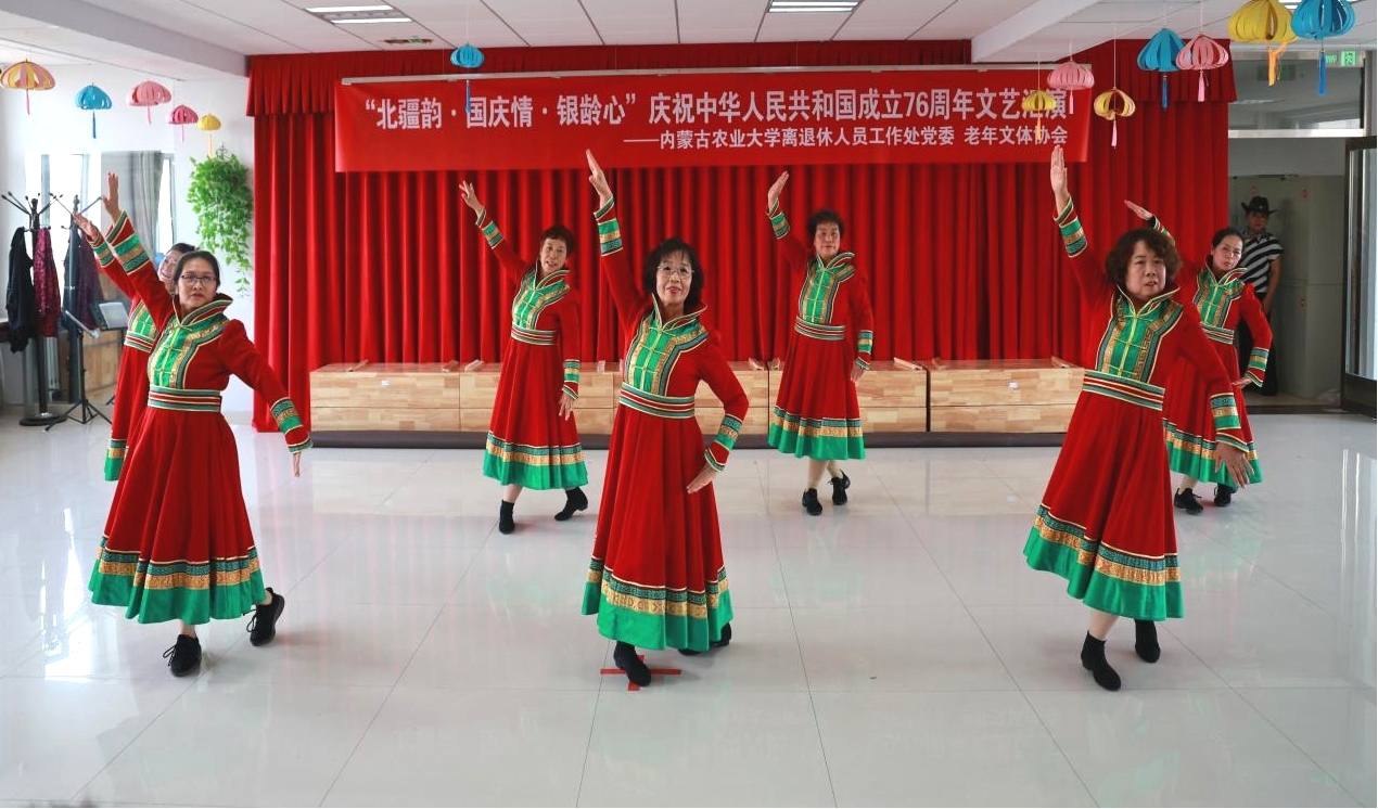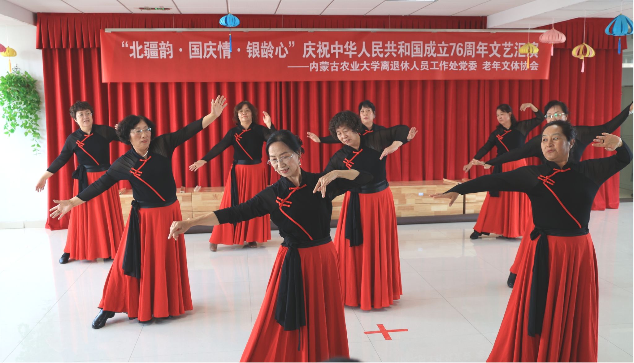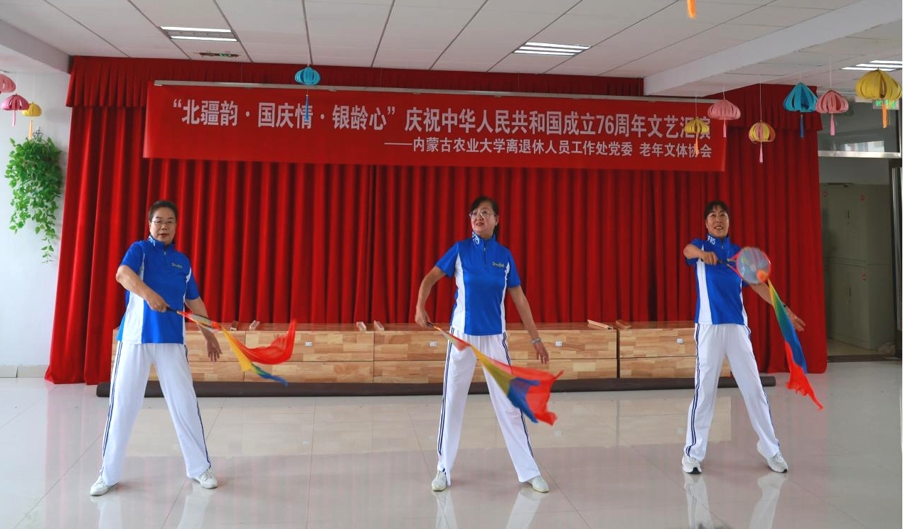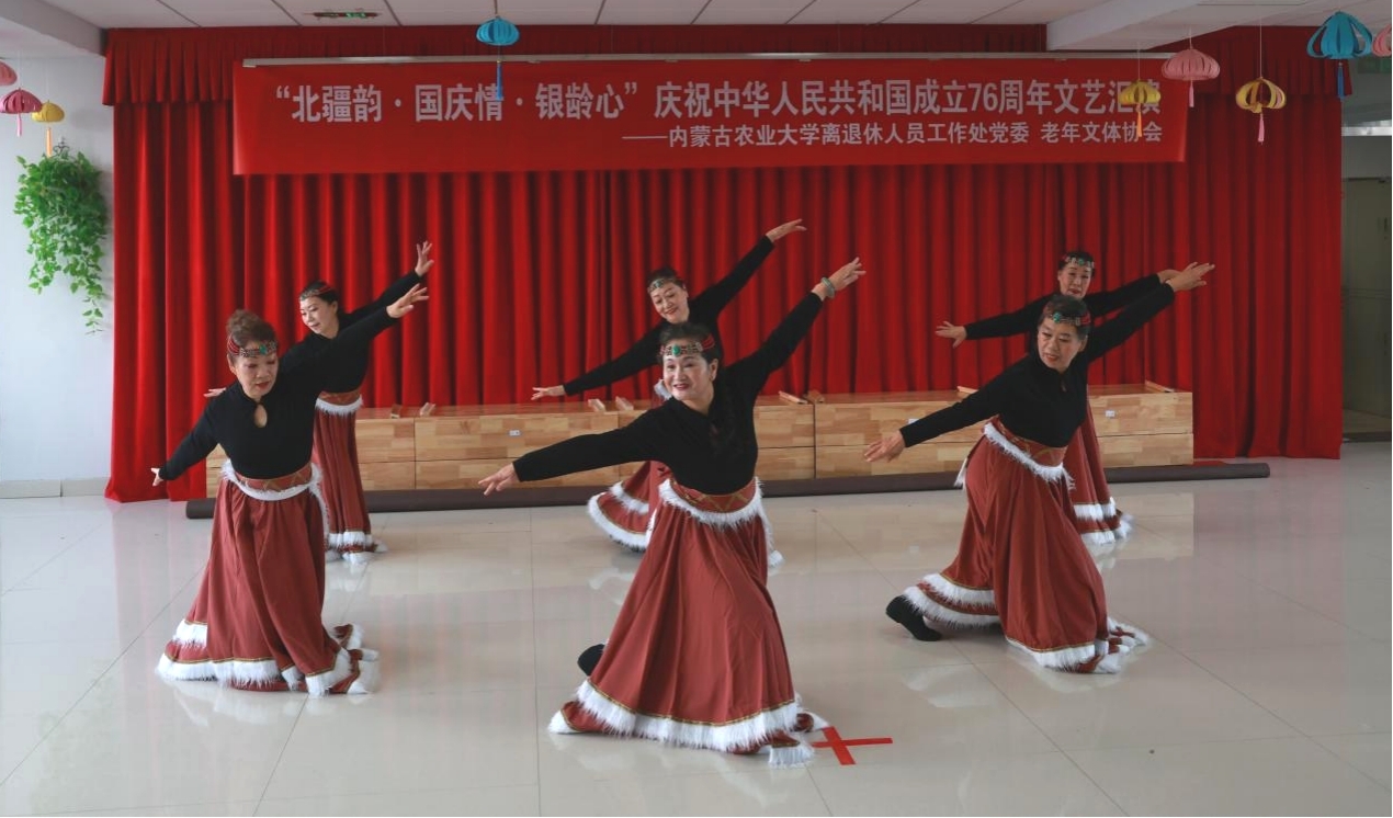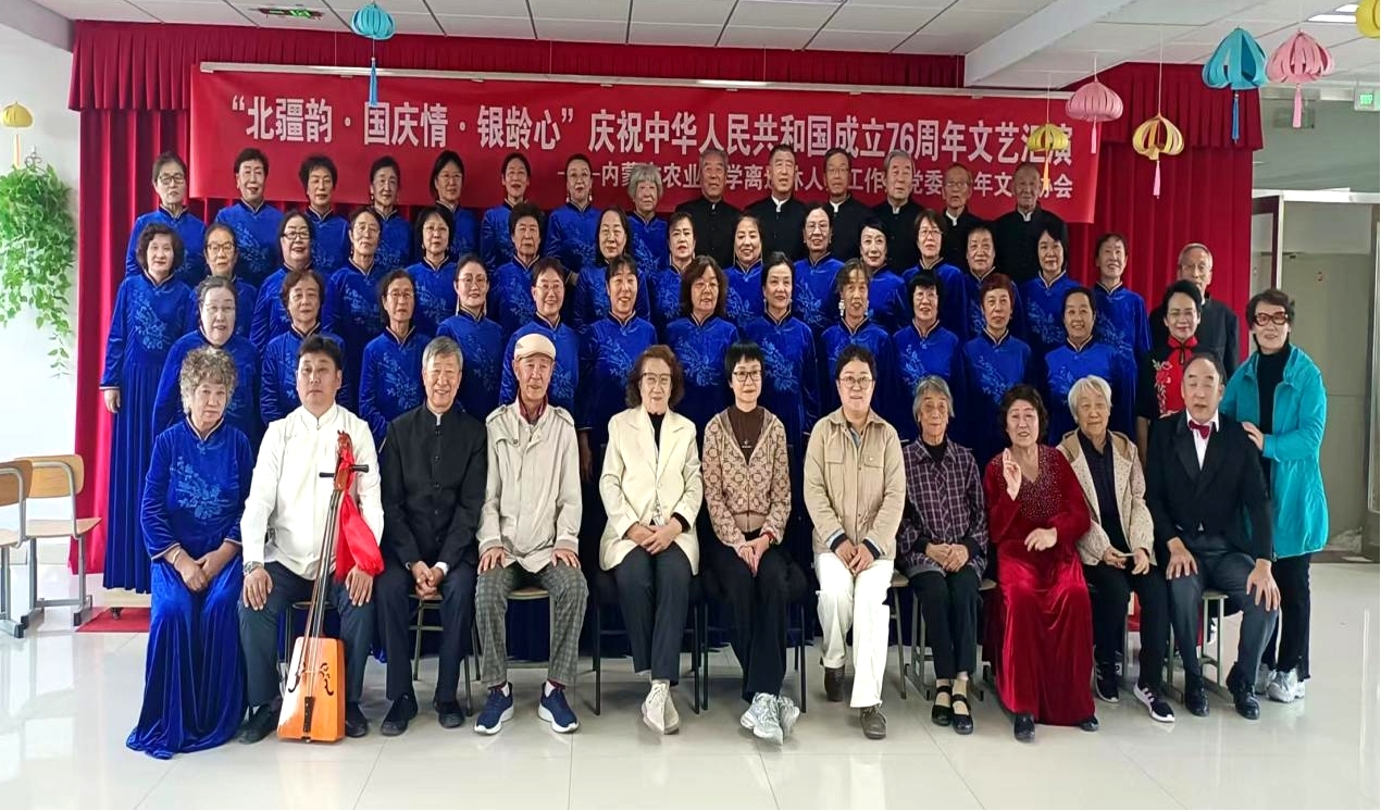 金秋送爽迎国庆,银龄欢歌展风采。9月30日下午,离退休人员“北疆韵・国庆情・银铃心”文艺汇演在离退休人员工作处四楼音乐厅温情启幕。此次汇演由离退休人员工作处党委、内蒙古农业大学老年文体协会联合主办。学校工会主席邹爱婕受邀观演,与现场离退休教职工共赏视听盛宴,同庆祖国华诞。