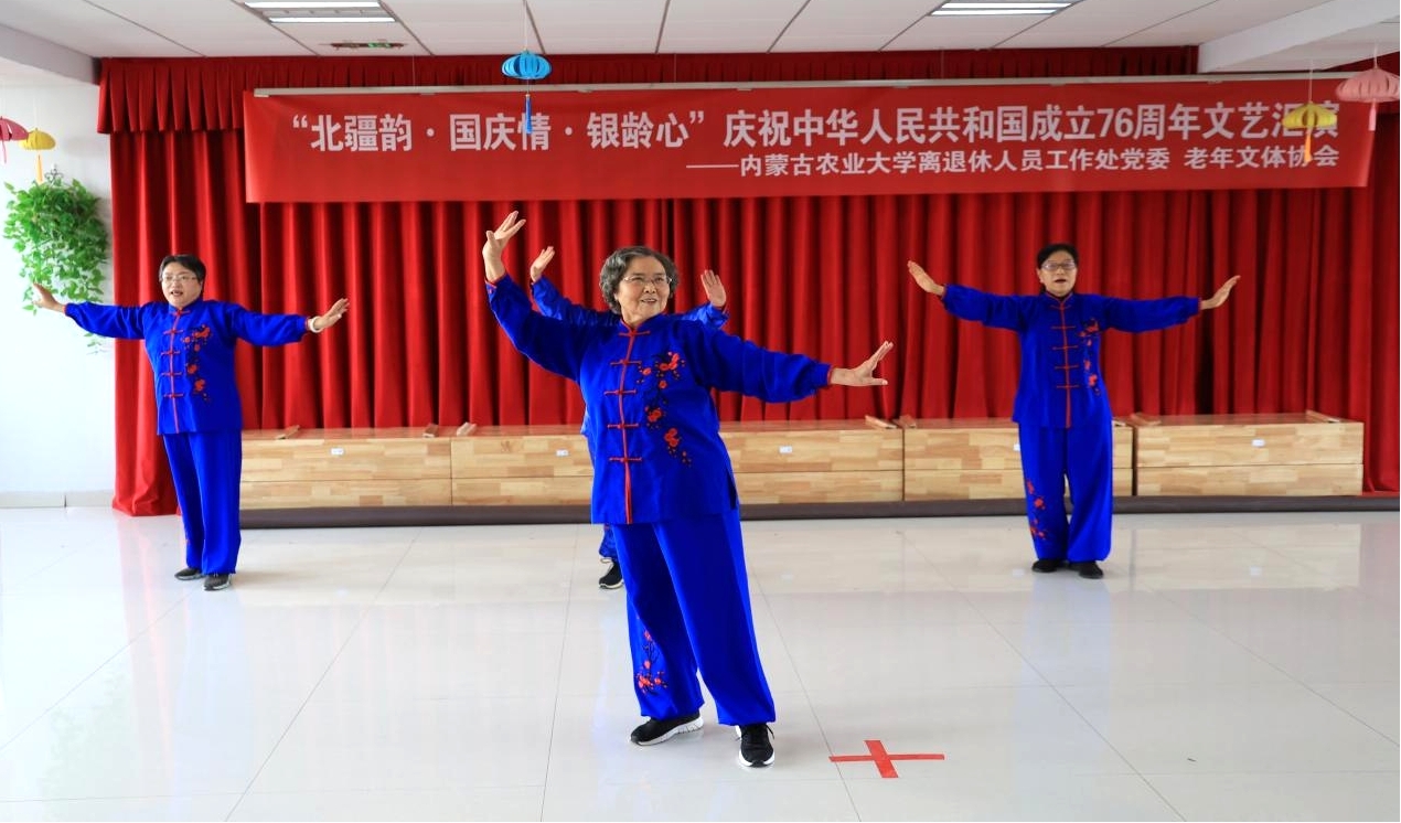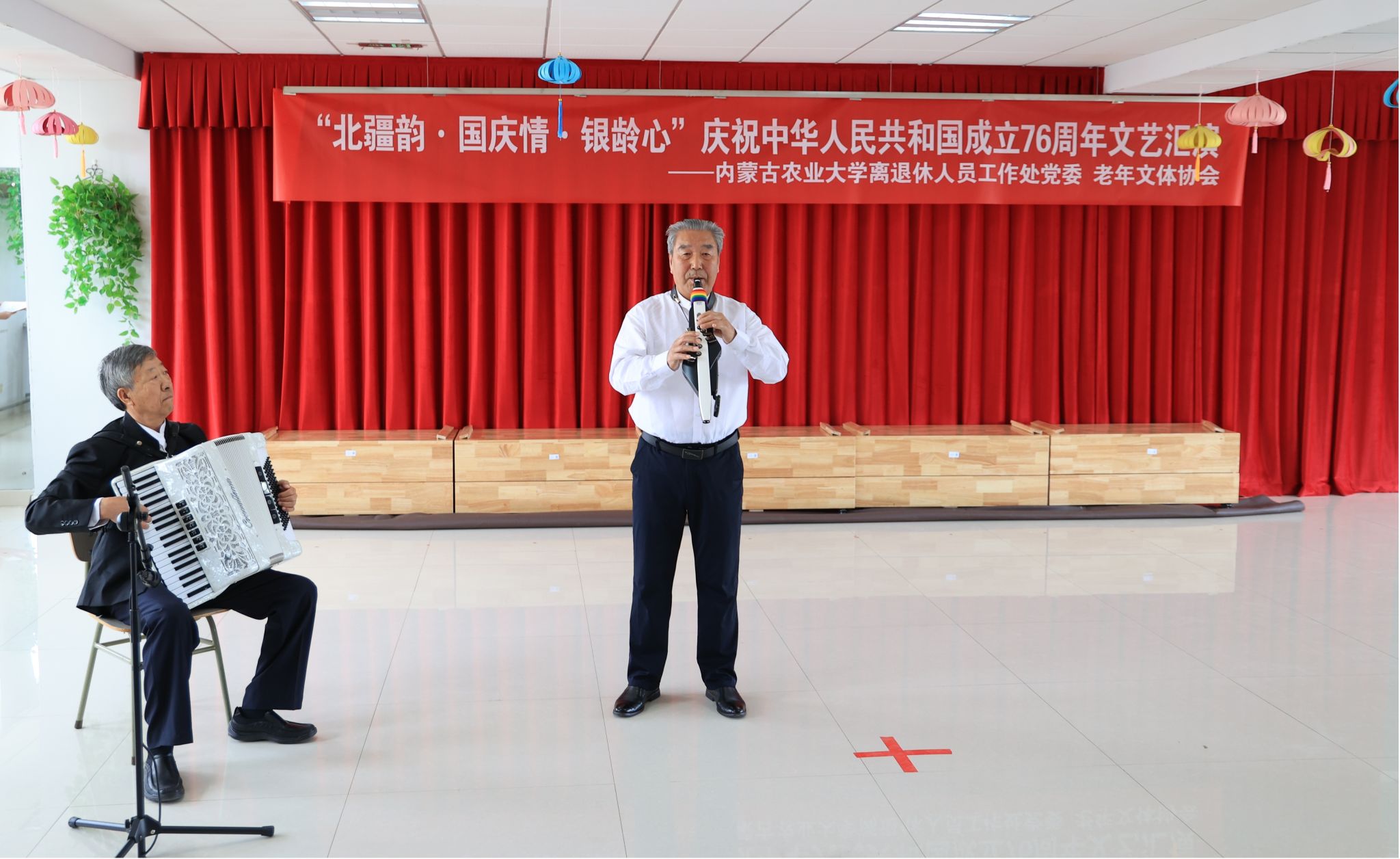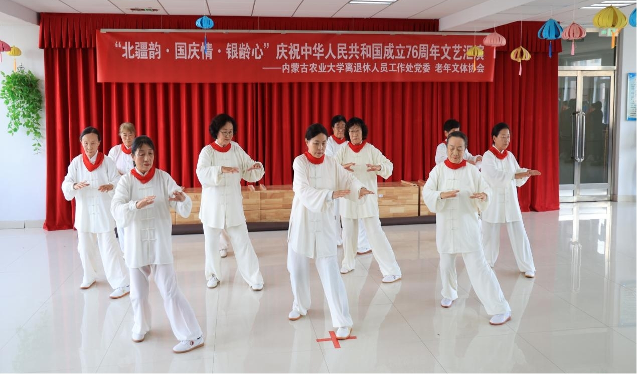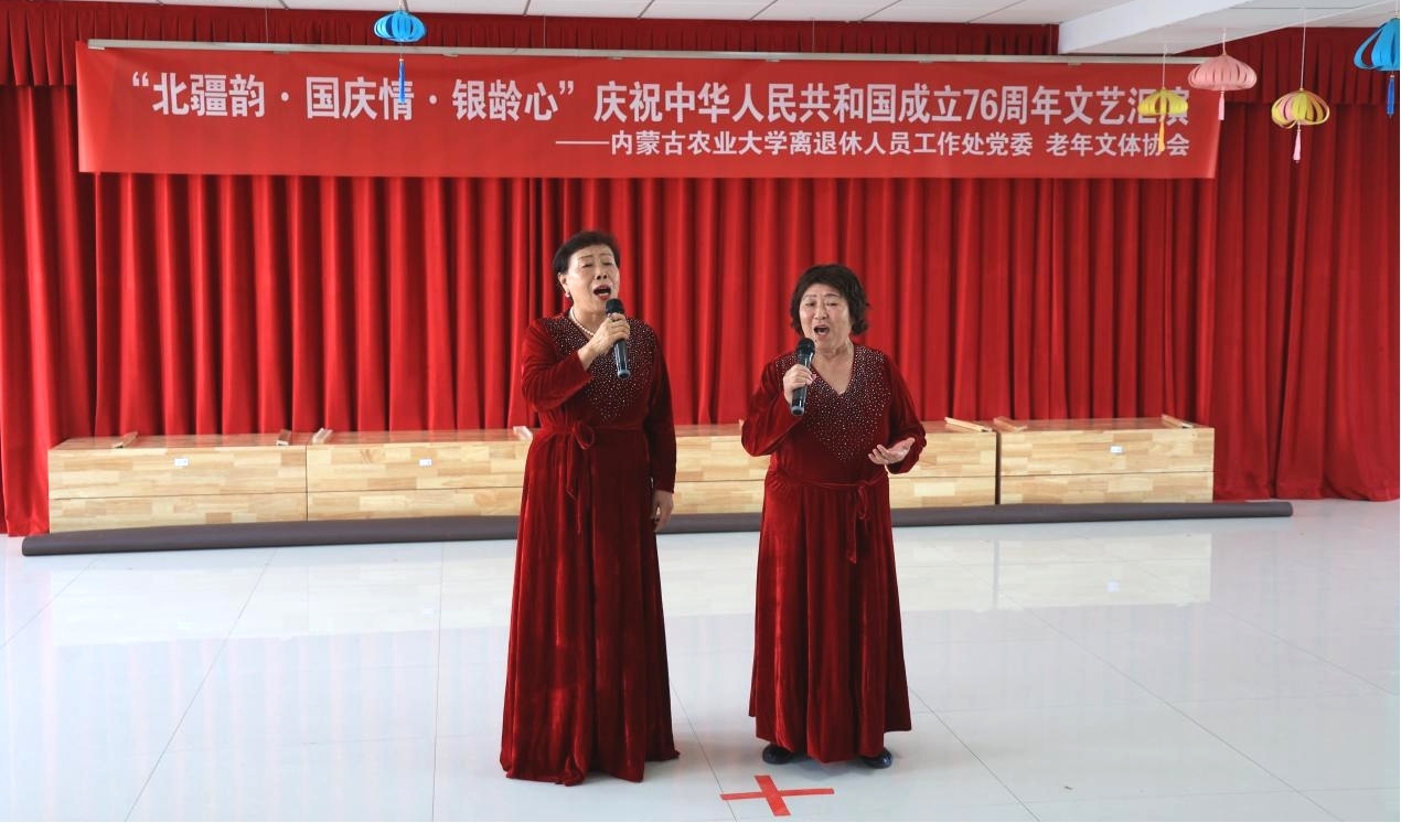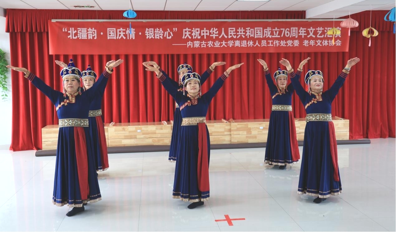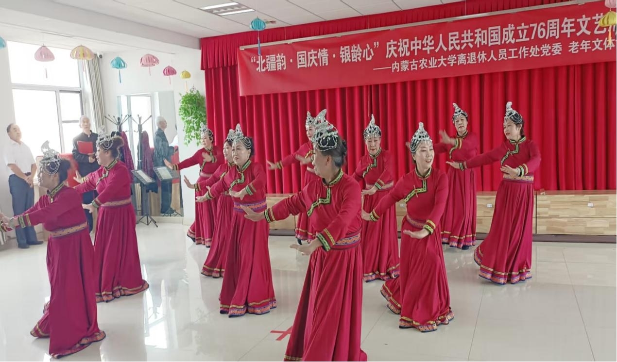 金秋送爽迎国庆,银龄欢歌展风采。9月30日下午,离退休人员“北疆韵・国庆情・银铃心”文艺汇演在离退休人员工作处四楼音乐厅温情启幕。此次汇演由离退休人员工作处党委、内蒙古农业大学老年文体协会联合主办。学校工会主席邹爱婕受邀观演,与现场离退休教职工共赏视听盛宴,同庆祖国华诞。