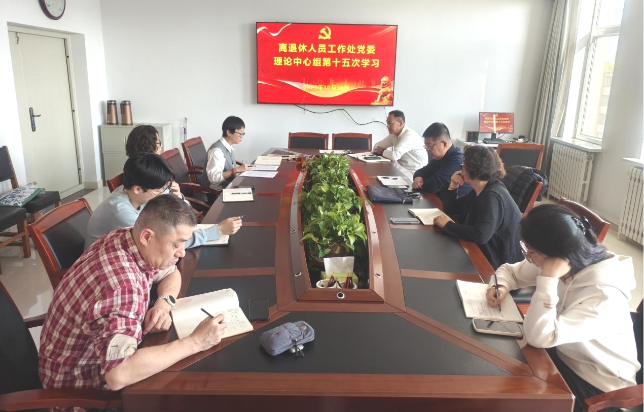 10月30日下午,离退休人员工作处党委理论学习中心组在四楼会议室召开2025年第十五次扩大学习会,全体在职教职工参会。