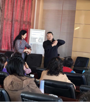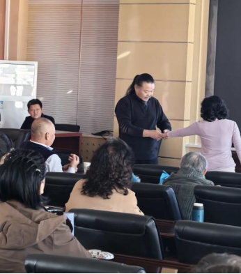 讲座现场反响热烈,老教授们就慢性病防治、四季养生等话题积极发问。李明先生融合中医理论与现代医学案例,详细解答老同志们的疑问。之后,李明团队在会议室设立临时诊疗区,为老教授们提供一对一诊疗服务,现场演示了简易有效的穴位按摩方法,讲解了四季养生药膳的合理搭配。